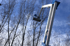 Jászberényben magas fák kivágása a 32 méteres bérelhető Socage ForSte 32DJ emelőkosaras gépünkkel.